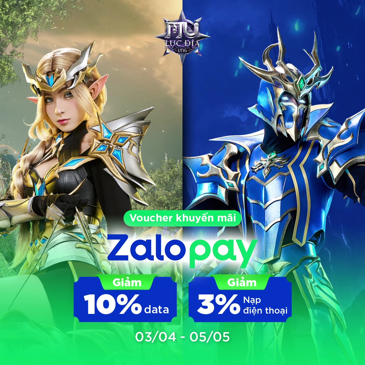 Thể lệ: Trong thời gian diễn ra sự kiện, Mutizen chơi game MU Lục Địa VNG và đạt cấp độ trên lv40 và tiến hành nạp tiền điện thoại thông qua app Zalopay sẽ nhận được voucher khuyến mãi. Khi áp dụng sẽ được giảm 3% giá trị gói nạp, tối đa 10K - áp dụng cho đơn có giá trị từ 100K.
