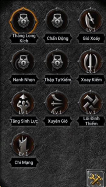 ● Thăng Long Kích, Chấn Động, Gió Xoáy, Nanh Nhọn và Thập Tự Kiếm: Chỉ khi sử dụng một vũ khí cụ thể, Mutizen mới có thể sử dụng được các kỹ năng này, gây sát thương lớn và đều có hiệu ứng đẩy lùi mục tiêu bằng những cú nhảy chém.