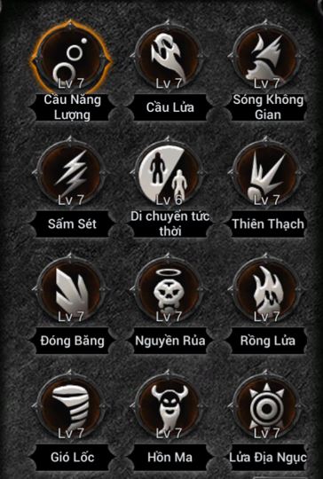 Sát thương kỹ năng: Nguyền Rủa < Cầu Năng Lượng < Cầu Lửa < Sóng Không Gian < Sấm Sét < Thiên Thạch < Đóng Băng.