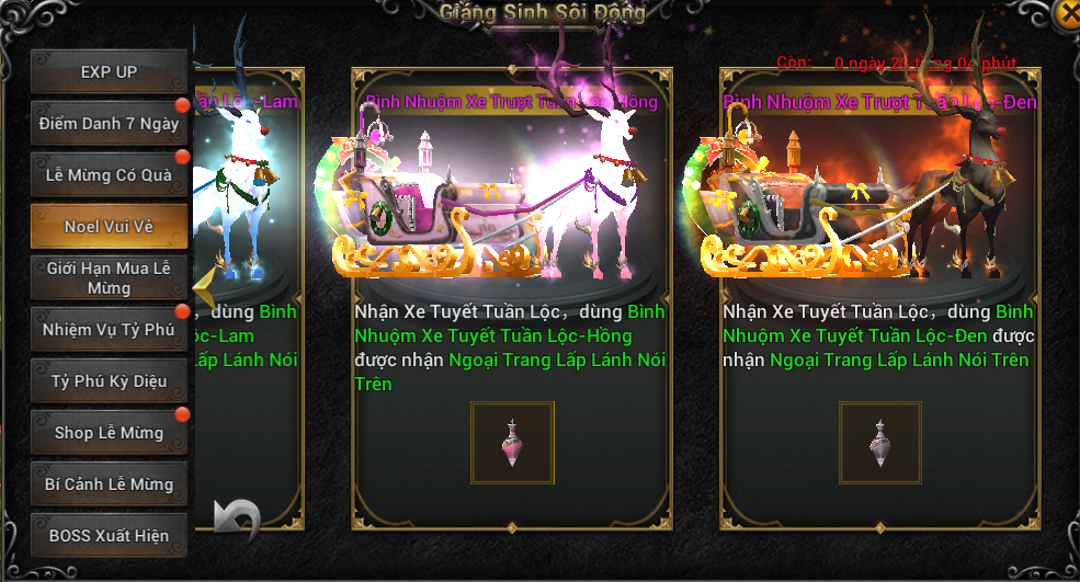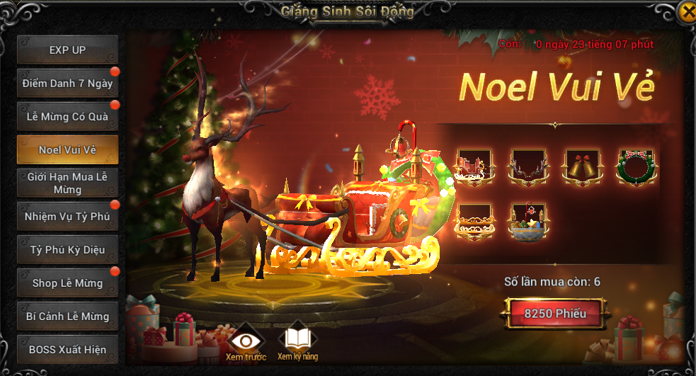 Nội dung: Sử dụng Phiếu để mua Skin Thú Cưỡi: Xe Trượt Tuần Lộc.