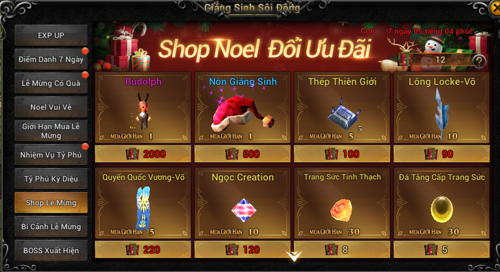 Thời gian: 00:00 24/12 – 23:59 29/12.