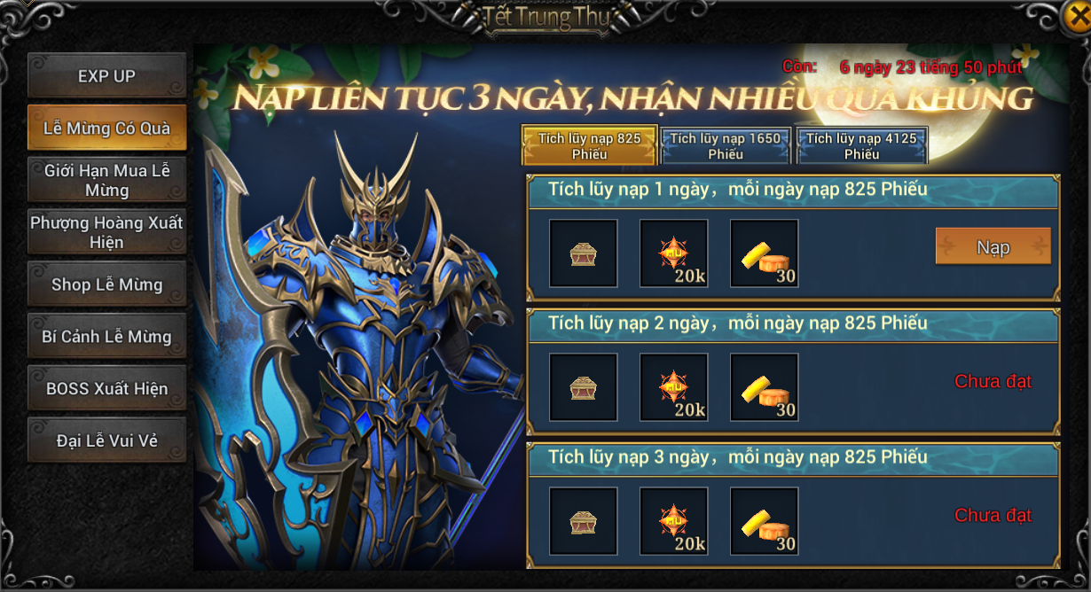 Yêu cầu: Server mở đạt ngày thứ 8 trở lên. Sau khi bắt đầu Sự Kiện, các Server đạt đủ ngày cũng sẽ không xuất hiện.