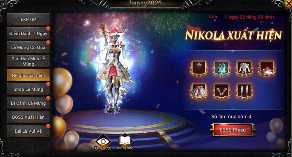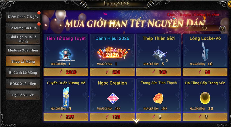 Nội dung: Sử dụng vật phẩm sự kiện để đổi thưởng giới hạn.