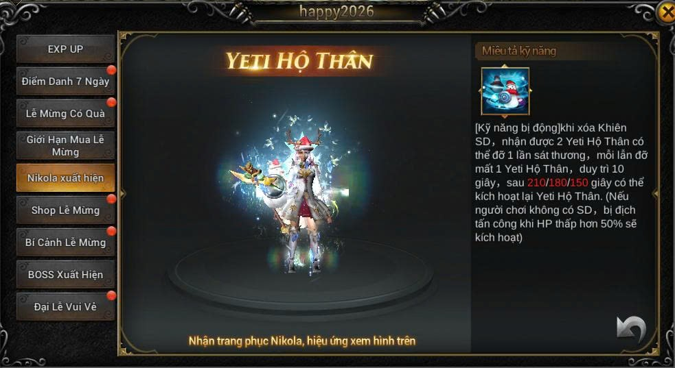 Skin ghép +2 có thể kích hoạt Skill mới: Yeti Hộ Thân.