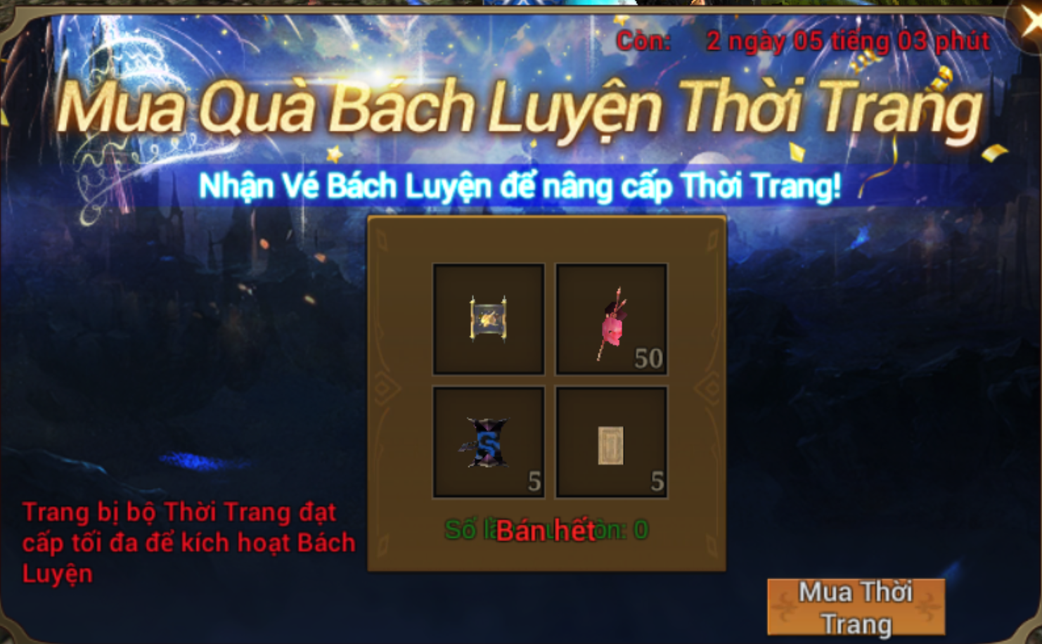 Nội dung: Mở bán vật phẩm Vé Bách Luyện Thời Trang.