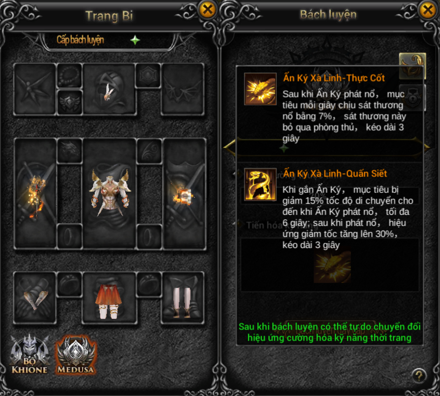 Sử dụng vé Bách Luyện Thời Trang sẽ cho 1 Skin chỉ định (đã Max cấp +4) các Skill đặc biệt tăng cường so với Skill cũ.