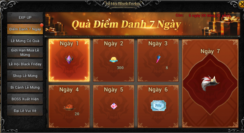 Nội dung: Trong thời gian diễn ra sự kiện, tích lũy số ngày đăng nhập để nhận được phần thưởng tương ứng.
