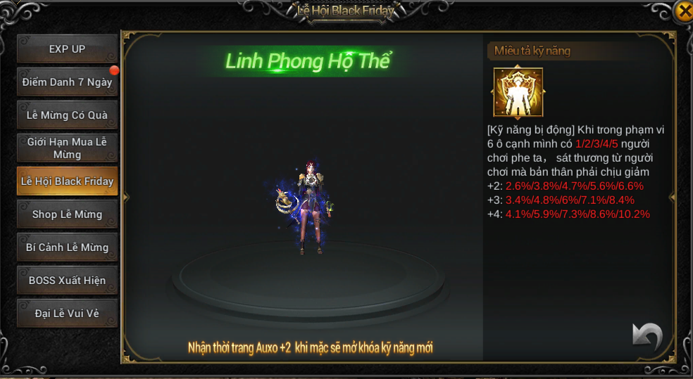 Skin ghép +2 có thể kích hoạt Skill mới: Linh Phong Hộ Thể.