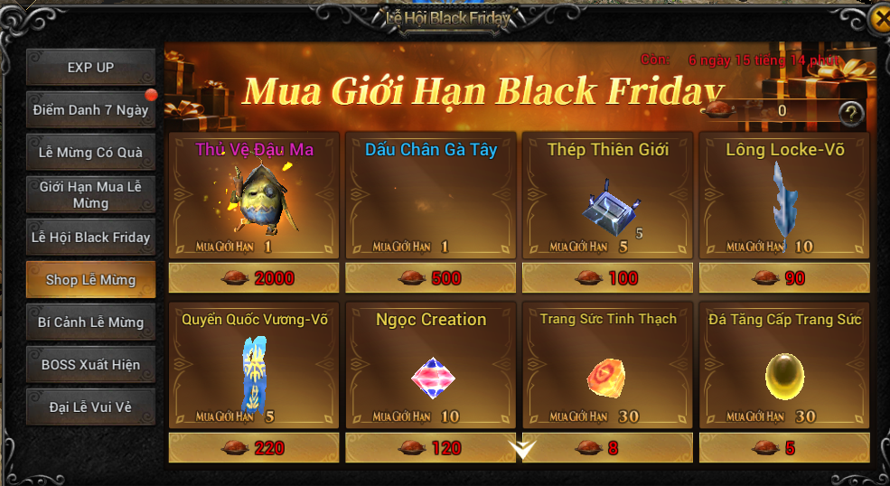 Nội dung: Sử dụng vật phẩm sự kiện để đổi thưởng giới hạn.