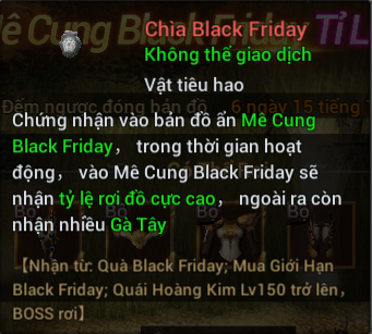 Nội dung: Sử dụng chìa khóa đặc biệt để vào Bí Cảnh Lễ Mừng.