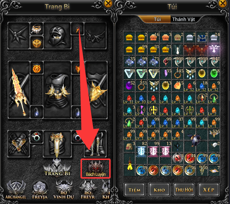 Lối vào Bách Luyện nằm trong phần Skin Nhân Vật.