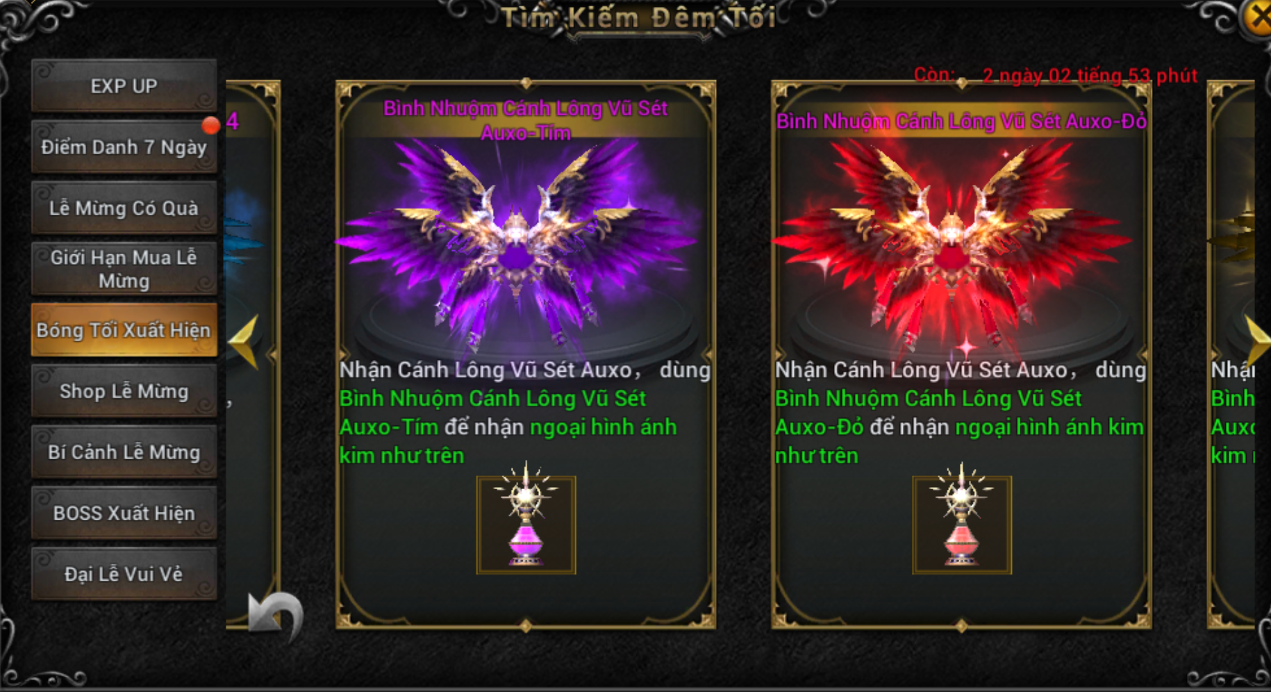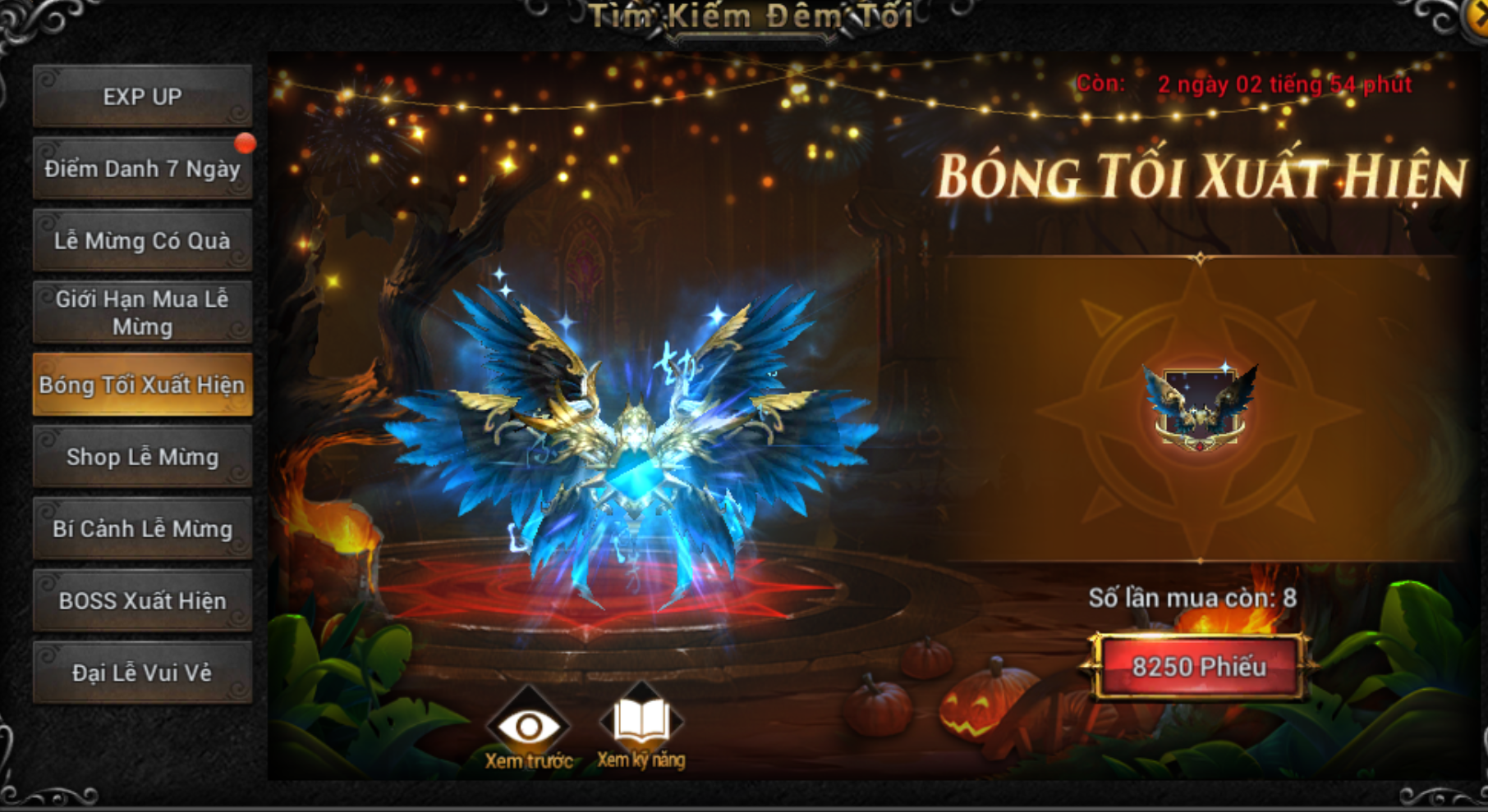 Nội dung: Sử dụng vật phẩm Huy Chương Lễ Mừng để đổi thưởng giới hạn.