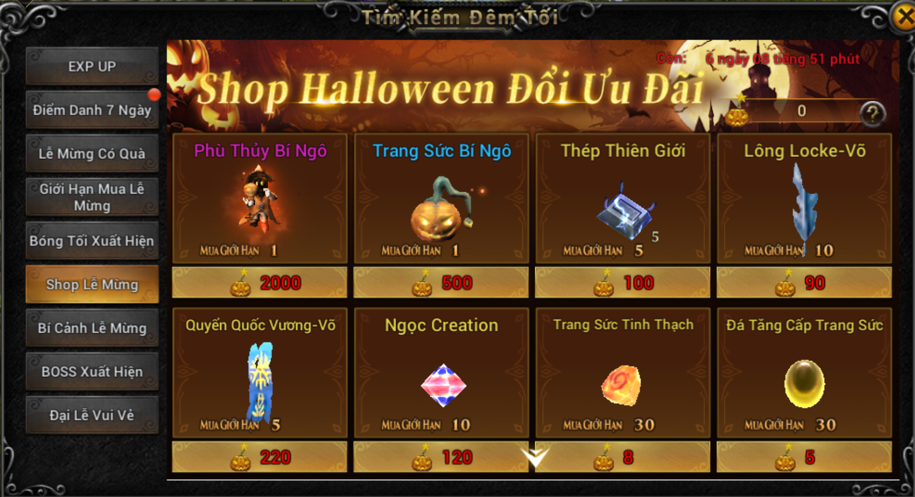 Thời gian: 00:00 31/10 - 23:59 02/11.