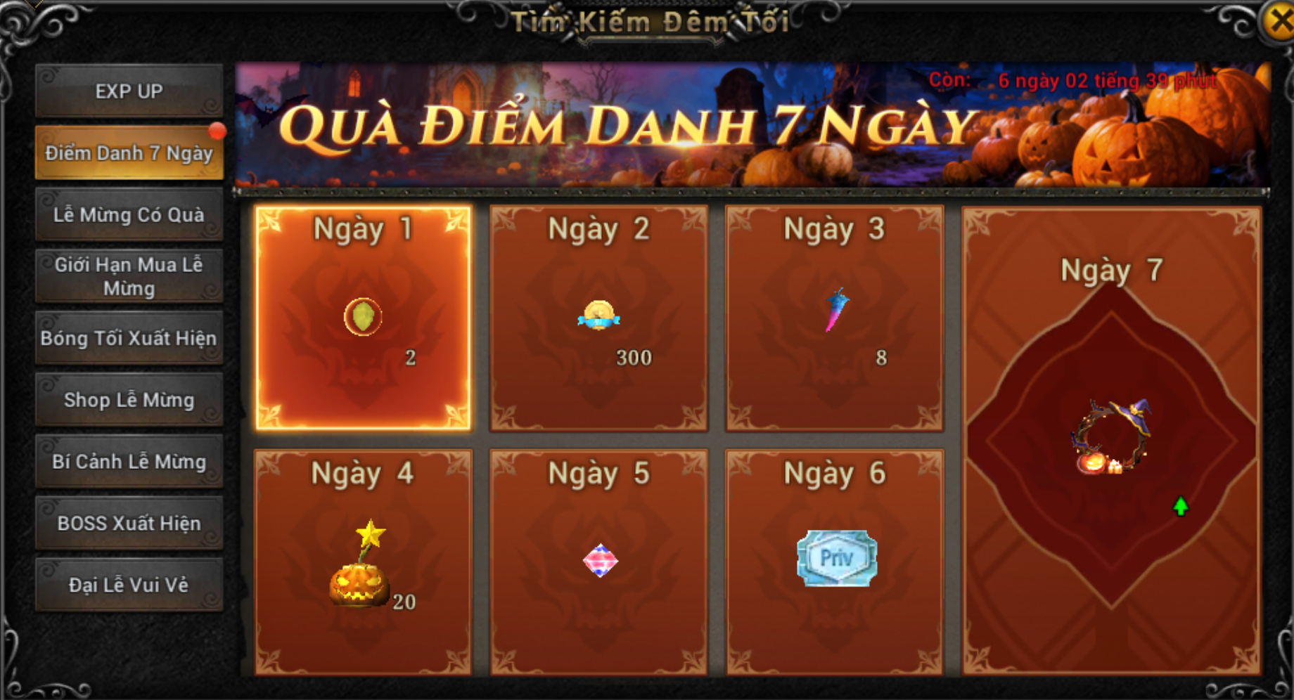 Nội dung: Trong thời gian diễn ra sự kiện, tích lũy số ngày đăng nhập để nhận được phần thưởng tương ứng.