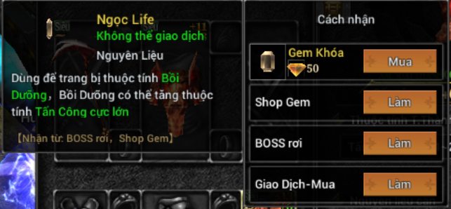 "Ngọc Life" có thể nhận được thông qua săn Boss.